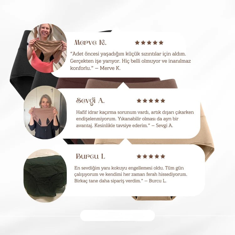 Artık regl döneminde hiçbir sızıntı yaşamıyorum. Gün boyu kuru kalıyorum, inanılmaz rahat!